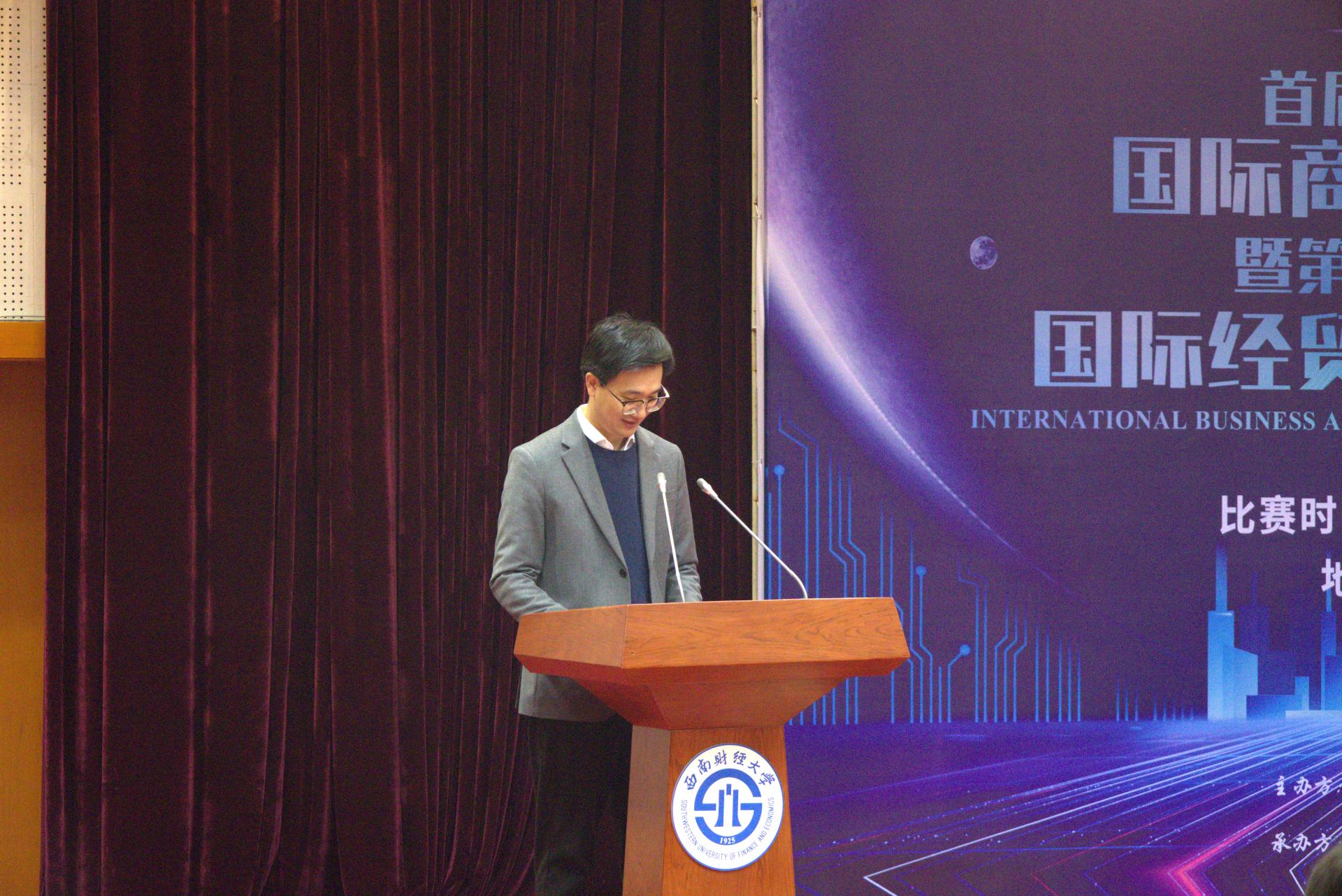 国际商学院副院长蒋为教授为大赛开幕致辞。他在讲话中向在场师生介绍了西南财经大学的光辉校史、国际商学院的办学历程以及赛事筹办的主要工作,向对本次大赛提供指导的专家学者表示衷心感谢,向积极参赛、成功入围决赛的学生团队表示热烈祝贺。